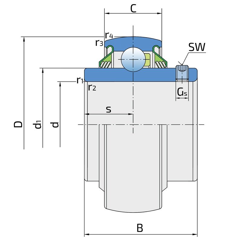 Y-подібні кулькові підшипники з гвинтовим фіксатором