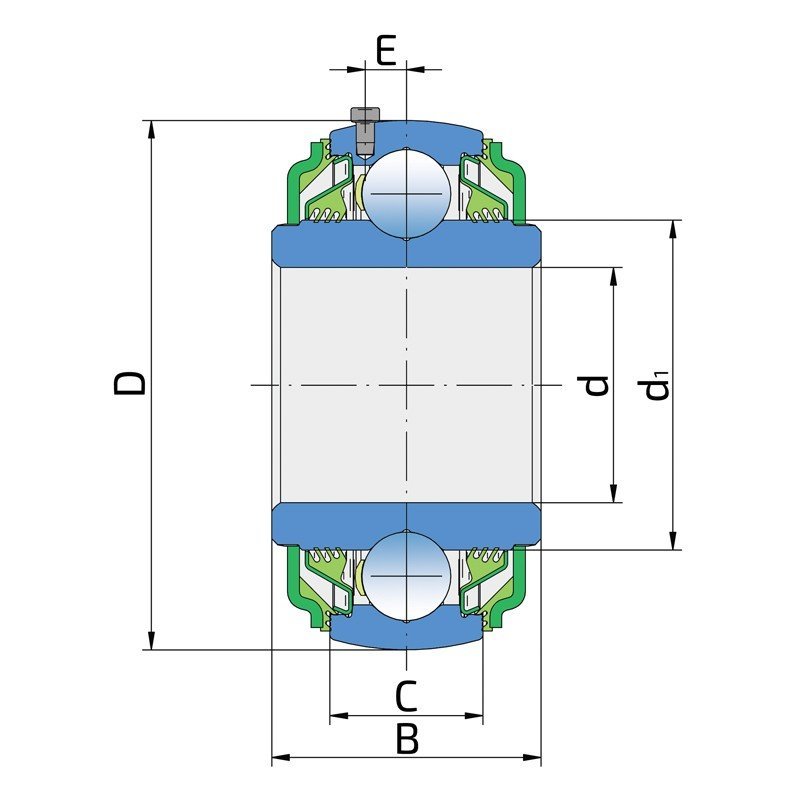 | E - Відстань від центру доріжки кочення до отвору для змащення (мм) | 7 |