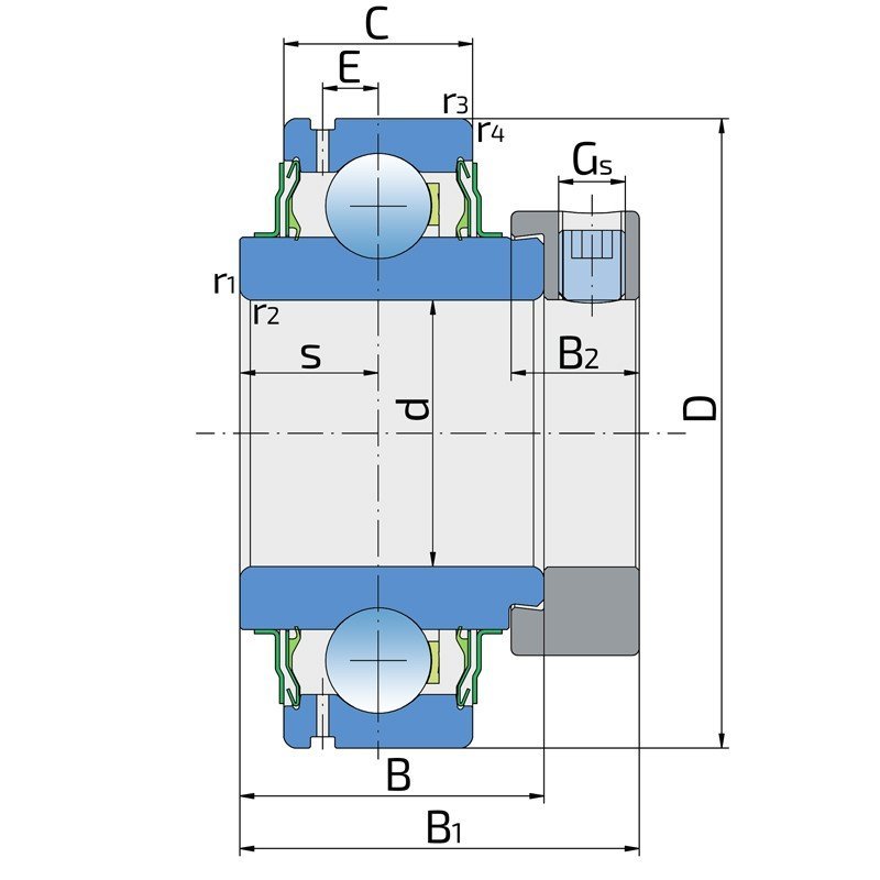| E - Відстань від центру доріжки кочення до отвору для змащення (мм) | 7.95 |