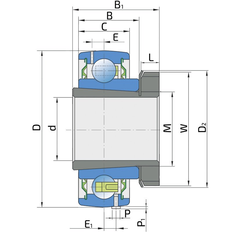 Використовується з підшипником Y (стандарт) і радіальними шарикопідшипниками.