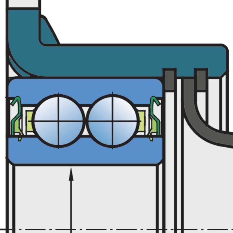 Підшипниковий вузол (дворядний радіально-упорний кульковий підшипник у штампованому сталевому корпусі).